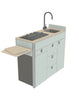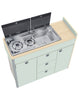 Kan geleverd worden met verschillende kook-spoelcombinaties of huiselijke kookplaten, kranen. Dit kan gecombineerd worden met een onder-gemonteerde spoelbak met bamboe afdekplaat welke ook als snijplank gebruikt kan worden.