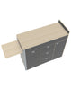 Keukenblok voor naast de schuifdeur. Past perfect aansluitend aan de contour van de bus. Speciaal voor de L2 met uitsparing van de wielkast en contour van de schuifdeur. Softclose lades en automatische vergrendeling. Werkblad kan verlengd worden met een uitschuifbaar stuk extra werkblad. Speciaal ontworpen voor de Vitrifrigo C50i welke toegankelijk is van binnen en buiten. Buitenzijdes zijn gevaardigd uit stevig 15mm berken multiplex met zeer sterke krasvaste HPL laag. Binnenzijdes zijn gemaakt uit lichtgewicht populieren multiplex met witte HPL laag. Werkblad is gevaardigd uit luxe 3-laags massief bamboe.