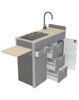 Kan geleverd worden met verschillende kook-spoelcombinaties of huiselijke kookplaten, kranen. Dit kan gecombineerd worden met een onder-gemonteerde spoelbak met bamboe afdekplaat welke ook als snijplank gebruikt kan worden.