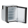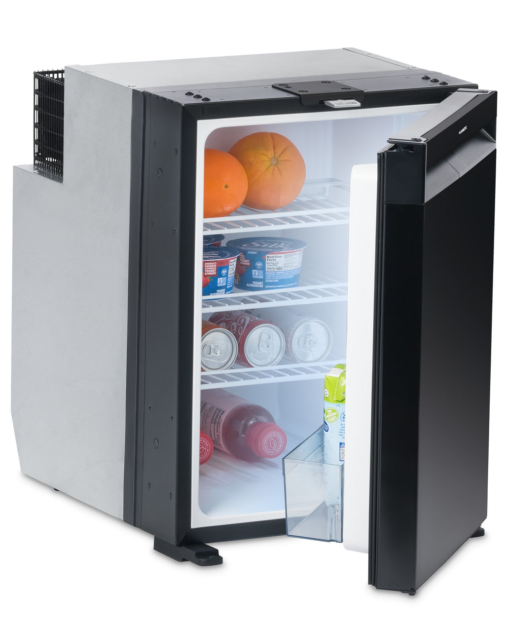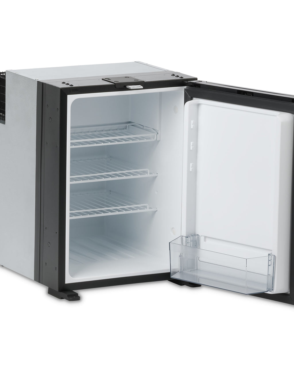 De Dometic NRX 50E is een stijlvolle, compacte compressorkoelkast met een inhoud van 44 liter en een elegant zwart front dat naadloos integreert in elk interieur. Dankzij de hoogwaardige compressor met variabel toerental is hij bijzonder energiezuinig en geschikt voor gebruik aan boord van een boot of in een camper/van. Hij werkt op zowel 12 V als 24 V en biedt drie bedrijfsmodi (Eco / Performance / Silent) die je situatie-gericht laat kiezen. Het interieur is eenvoudig gehouden met twee legplanken en een flessenhouder in de deur — er is geen vriesvak ingebouwd, waardoor de volledige inhoud benut wordt voor koeling. De deur is omkeerbaar (links of rechts ophangbaar), en de achterkant is schuin aflopend, waardoor installatie in minder royale ruimtes makkelijker is. Kortom: een slimme koeloplossing voor wie onderweg betrouwbaarheid, efficiëntie en design combineert.