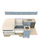 Met dit complete bouwpakket bouwt u uw Sprinter of Crafter in een handomdraai om tot een slimme hoogwaardige camper. Alles is gemaakt aan de hand van de contouren van uw bus en zit vernuftig in elkaar. Van gascompartiment tot tafel op laderails, overal is aan gedacht